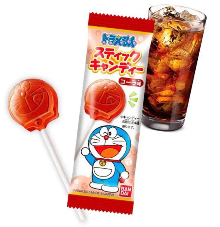 Piruleta japonesa con diseño inspirado en Doraemon, uno de los personajes más icónicos del anime. Su sabor a cola y su formato divertido la convierten en un dulce ideal tanto para fans como para quienes buscan un snack original.